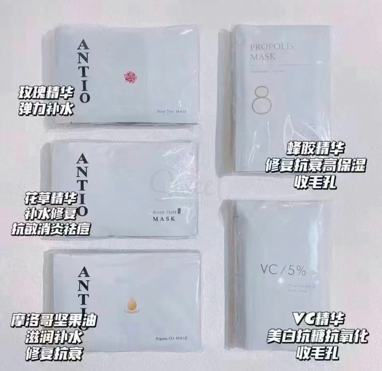 【日本】Nature Shop ANTIO 美容院线面膜 日本美容展人气面膜 保湿美白 玫瑰/花草/VC 一组10片 /Facial Masks