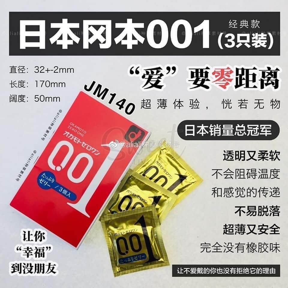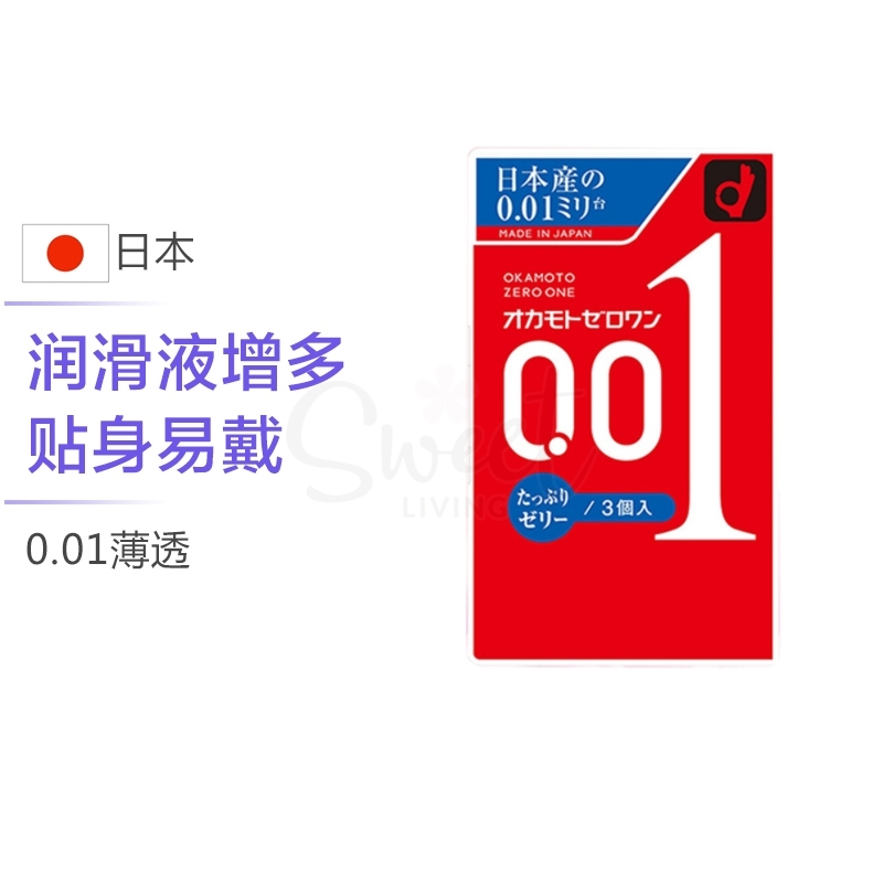 【日本】Okamoto 冈本001超薄安全套 真实体感 3个装 0.01 啫喱润滑款/0.03 多款入/ Condom